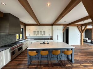 The clients first met Riverbend Timber Framing at a Log and Timber Home Show in Columbus, Ohio. They had already been working with an architect and needed to find a timber frame company to fabricate the timber structure for their home. After completing a final schematic design, they needed to work out the scope and