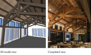 When the homeowners contacted Riverbend Timber Framing, they had already hired one of the country’s premier architecture firms, well known for their expertise in designing some of the most prestigious wineries in Napa Valley. The schematic design had been completed but the structural details were not yet contemplated. The homeowners engaged Riverbend to create a structural design from the architect’s schematic drawings, utilizing heavy timbers and structural insulated panels (SIPs) to form the structural shell of the home.