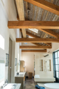 The architect, the builder, the Riverbend team, and the homeowners met a number of times with the goal of integrating the timber frame aesthetics into the schematic design, while at the same time ensuring the building would meet the structural requirements of the project. Napa’s building department has a very stringent process that required the Riverbend team to utilize their years of experience and training to successfully navigate the permitting process.