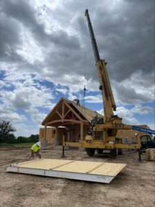 After finding Riverbend Timber Framing, the clients were excited about the structural engineering solutions and the detailed construction approach–including a 3D walk-through and turnkey cost transparency. The clients’ vision for incorporating timber framing and structural insulated panels, combined with Riverbend’s expertise, laid the foundation for a collaborative and innovative project, echoing the barn’s timeless architecture and efficiently incorporating timber framing into their grand vision.