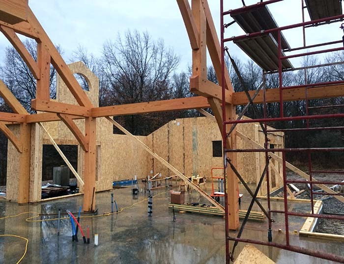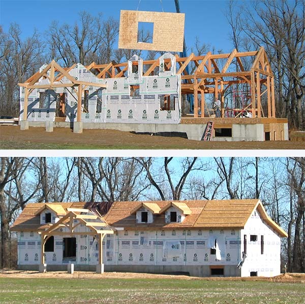 In traditional timber frame home construction, the entire structure is dependent on the timber framing. When we incorporate structural insulated panels, we reduce the dependence on the frame, which offers many advantages.