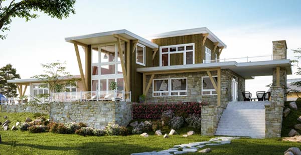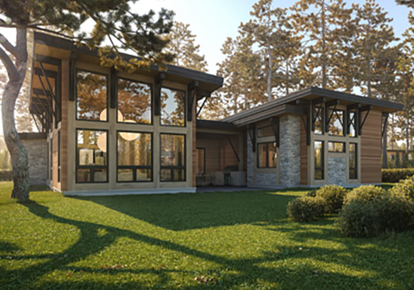 Modern home designs often include large windows and walls of glass to highlight the beauty of nature, so we will work with you to orient the house to take advantage of the best views on your property. If you build in a neighborhood where houses are close together, we will consider window placement and other ways to incorporate privacy to your home. In addition, our modern timber homes are designed with sustainability and efficiency in mind. However, it’s a good idea to consider your climate before finalizing a design. In areas that are extremely cold, you may want to forgo the retro carport that many include in modern style homes for an enclosed garage. And, heavy snow loads may affect the flat roof design found on many modern style homes. Riverbend works with you to custom design your home to meet all your needs as well as any jurisdictional requirements. In fact, every home we design is stamped by a third-party engineer licensed for your build location.