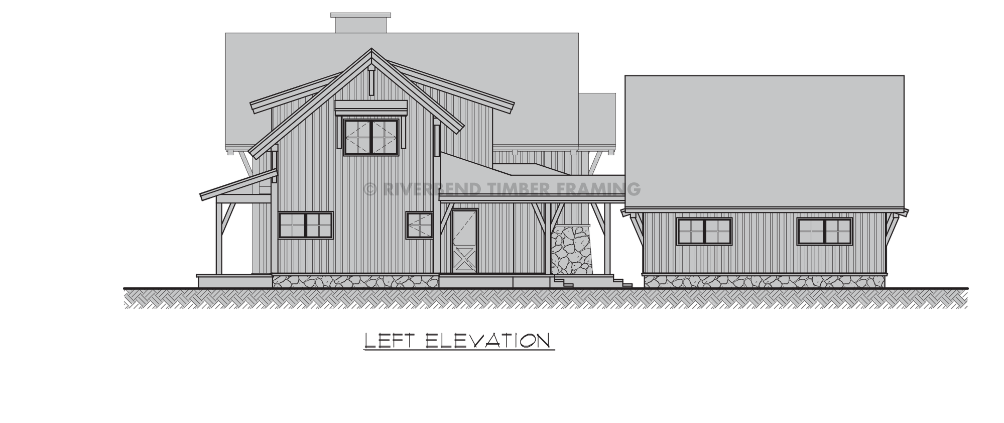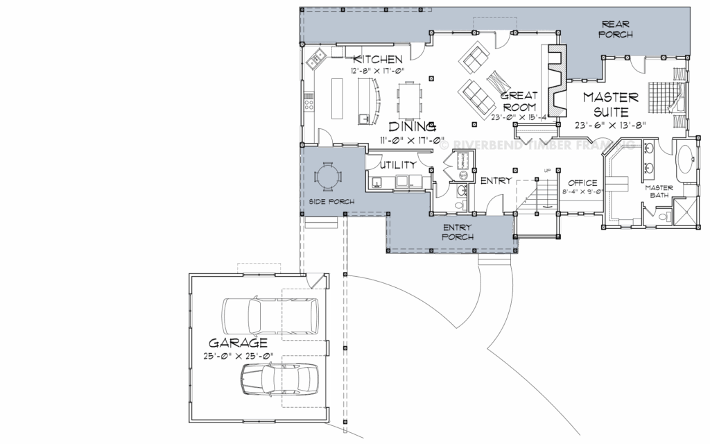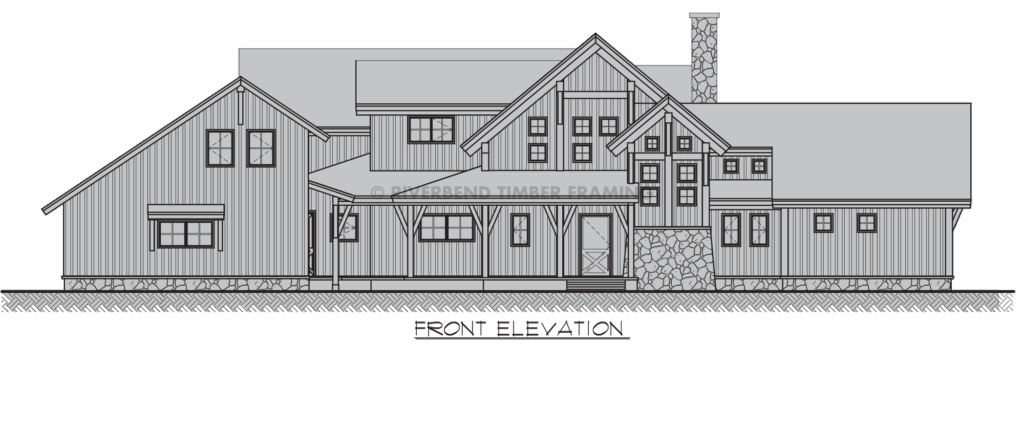 • Timber frame porches on either side of the home create timeless gathering spaces