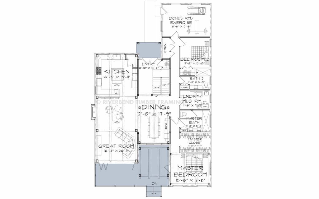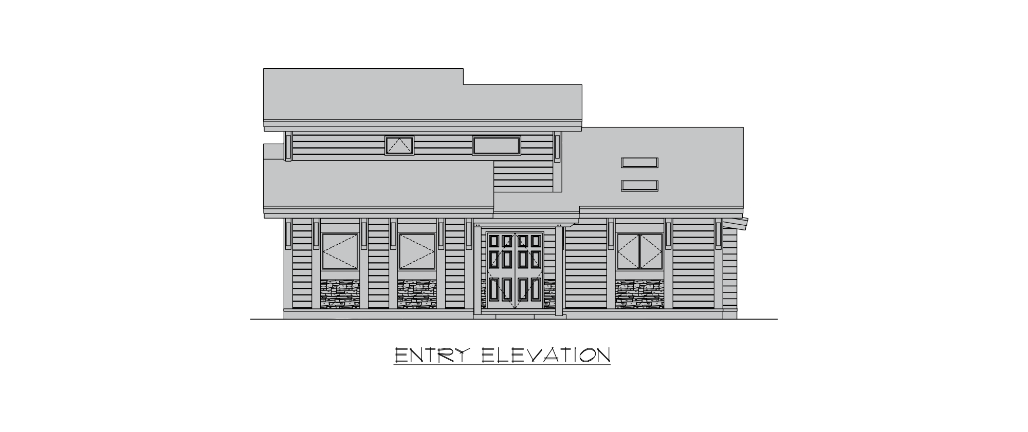 From its spacious deck to the refined materials palette, the Finley is a modern design with the heart of a timber cottage. The impressive use of glass and angled rooflines showcases the views of your favorite lake, a grove of pine trees, or the mountains in the distance. With wood and stone cladding, the exterior brings a modern twist to natural building materials. Inside, a grand dining room is the center of the home, opening to an awe-inspiring great room, featuring soaring ceilings, massive windows and accordion doors that flow directly to an elevated deck. The kitchen overlooks the entertaining spaces, and has plenty of room to gather and enjoy appetizers and a glass of wine with guests. The elegant primary bedroom suite features a generous walk-in closet, and luxurious master bath with large luxe shower, dual vanities and private water closet. Rounding out the main floor is an additional bedroom, bathroom, laundry space and a bonus room could be used as a home gym, and a third bedroom on the upper level could easily double as an office or craft space. Outside, a spacious elevated deck flows out from the great room, with additional access from the formal dining space and the master bedroom, perfect for family living as well as elegant entertaining.
