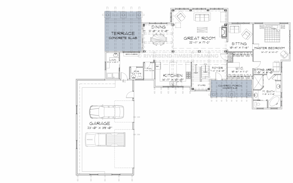 The Lexington is a modern-day classic, offering a highly versatile timber frame design highlighting privacy and views. The Lexington radiates the timeless elegance of a classic equestrian ranch estate, yet seamlessly adapts to settings ranging from urban environments to country retreats or mountain escapes. Upon arrival, the timber rafters covering the front entry invite you in, hinting at the sophisticated charm beyond. Inside, the warmth of the continued timber framing enhances the experience as you enter the home. A welcoming foyer leads into the great room, where expansive living areas bathed in natural light are accentuated by natural details, creating an ambiance of refined sophistication.
