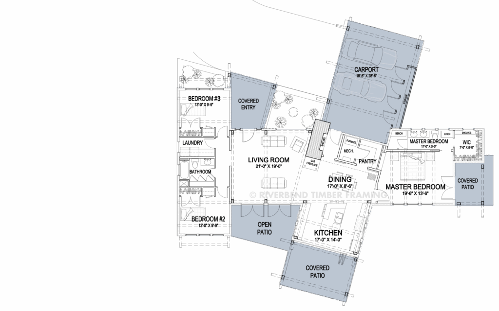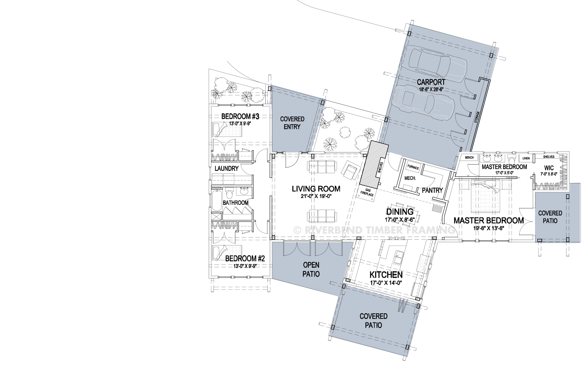 Experience a remarkable combination of luxury living and inspired architecture in this charming yet expansive home. Drawing inspiration from mid-century modern design, this thoughtfully crafted floor plan boasts unique angles, clean lines and open living space, evoking a sense of sophistication and relaxation. Upon entering, you’ll be greeted by an abundance of natural light that dances beautifully off the timber frame accents. The living room boasts large windows and double glass doors to the patio, and an eye-catching fireplace that stands as a focal point in the center of the home. The open dining area leads to the angular kitchen, a modern masterpiece that is perfect for elevated entertaining. A large central island is ideal for culinary adventures, and a striking feature wall of accordion doors leading to a covered patio effortlessly blurs the line between indoor and outdoor dining experiences. Tucked away on one end of the home is a luxurious primary suite, while two additional bedrooms occupy the opposite end of the home, providing comfort and convenience for family and guests alike. A loft provides an additional bonus space, which could be used as a home office. Outside, multiple patios extend the living spaces to the serene surroundings, creating a relaxing oasis to enjoy the good life with good company. With its modern styling and harmonious blend of functionality and aesthetics, the Madrona embodies contemporary living at its finest.