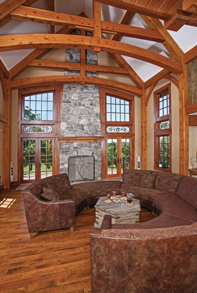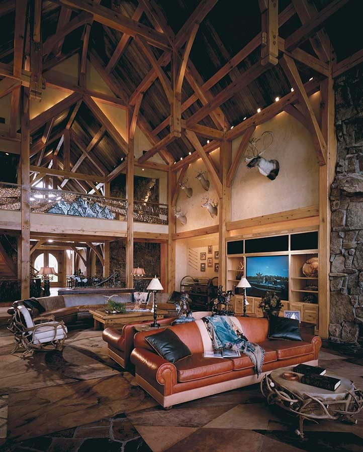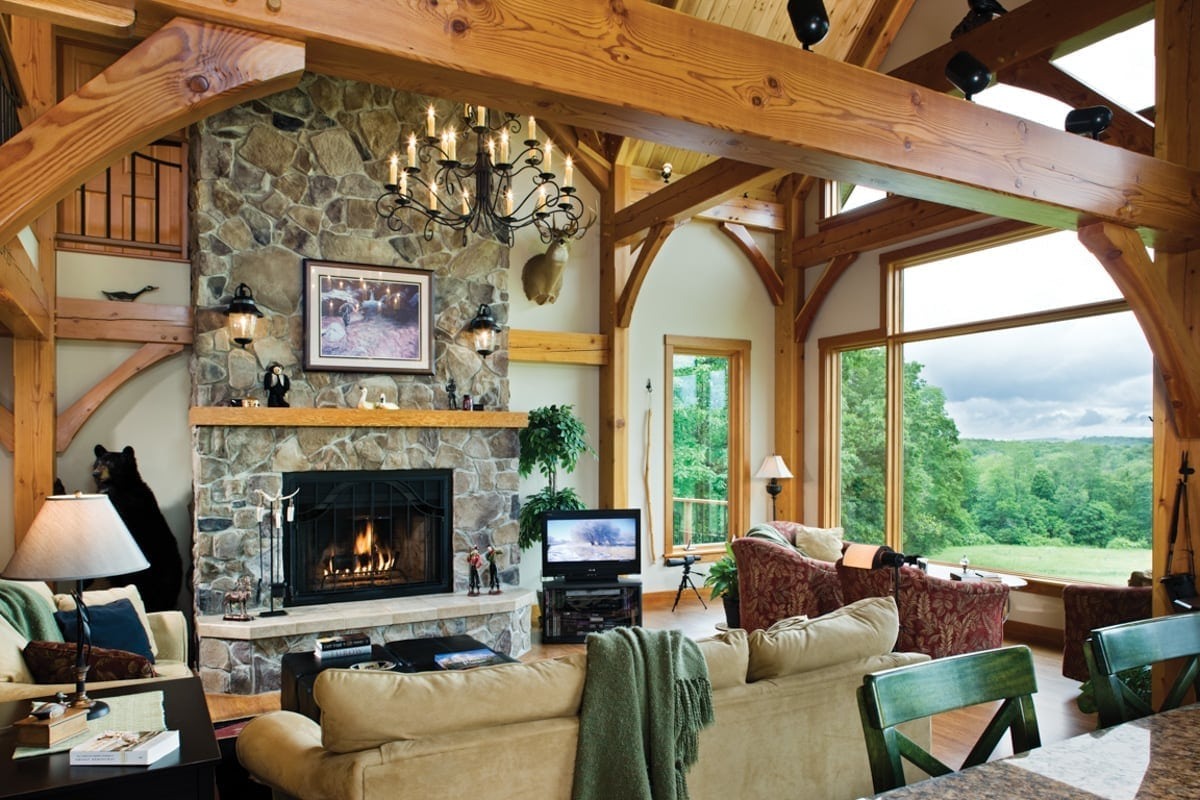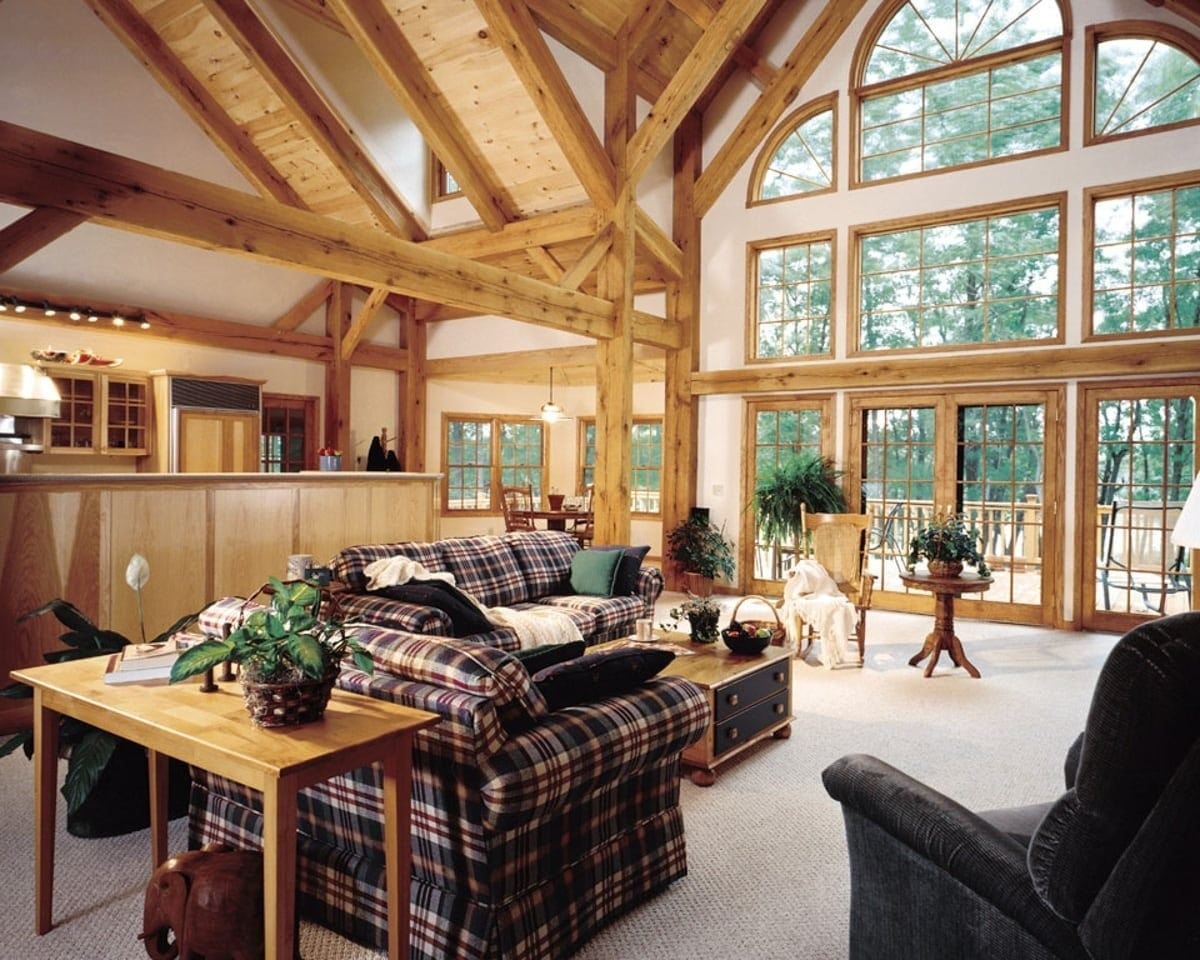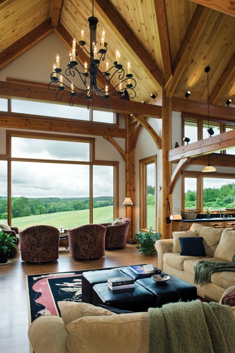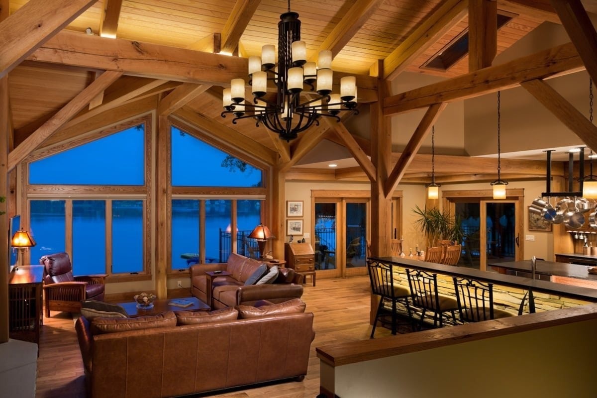 The great room commonly makes up the heart of most homes. As a popular gathering area, this room is often spacious and features vaulted ceilings with warm timber framing. The specific style of timber framing can vary greatly depending on the space and your personal preferences. Are you still trying to determine how you would like to design your own great room? Our gallery of great room photos is the perfect place for you to get ideas. Have a good look at everything from rustic lodges to elegant modern designs.