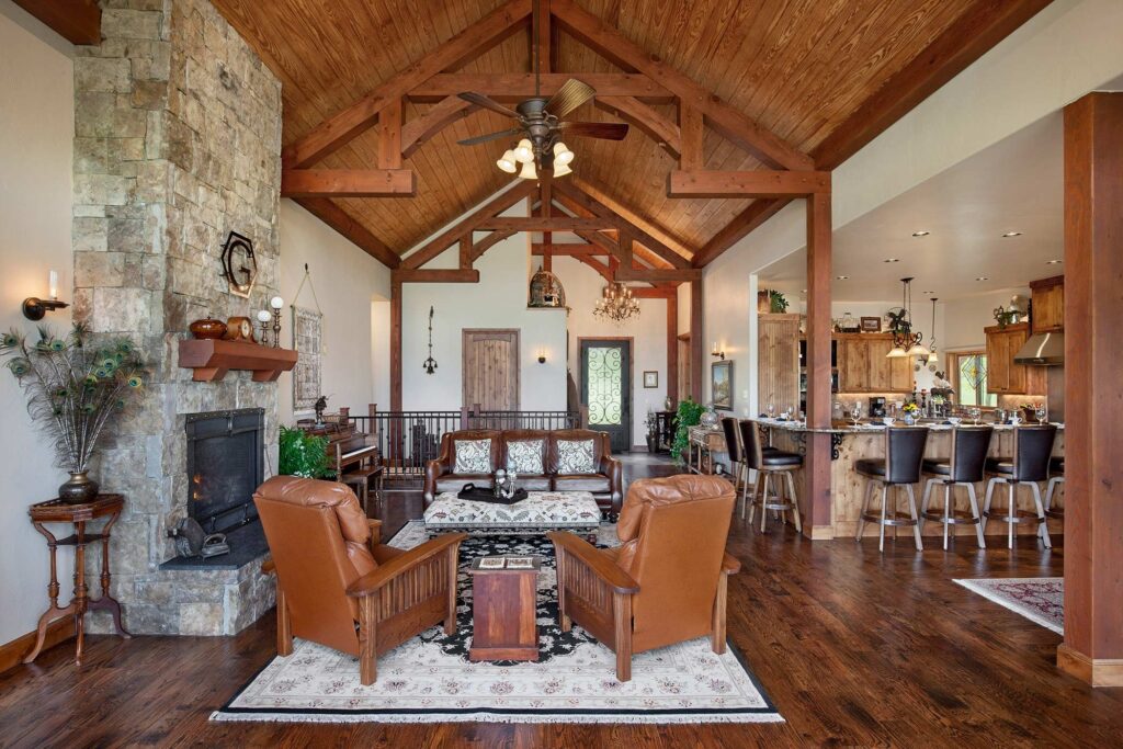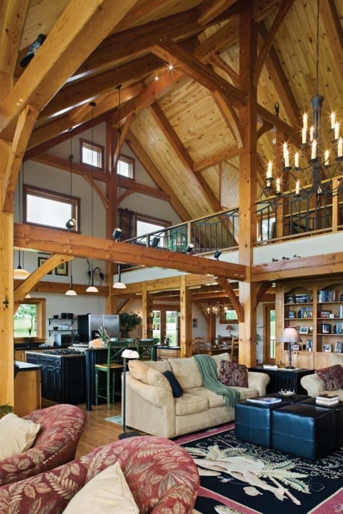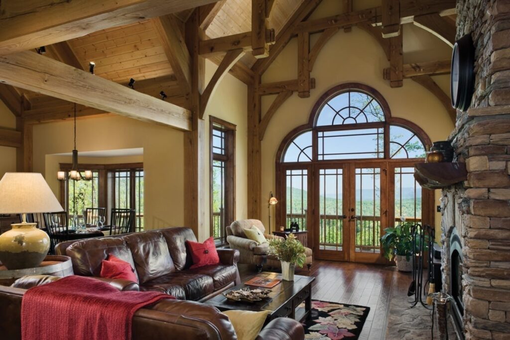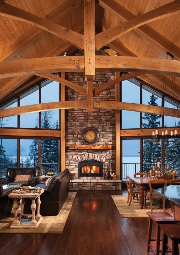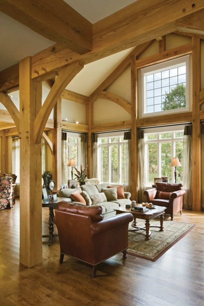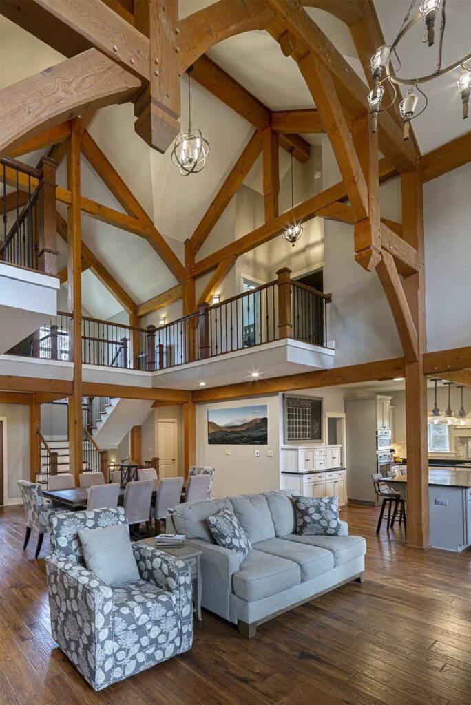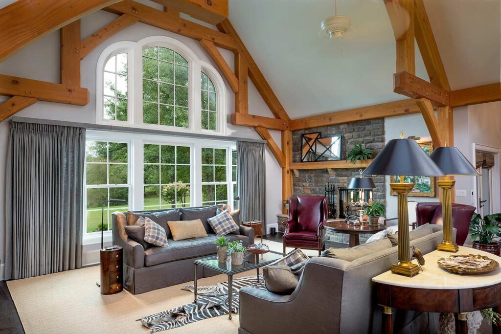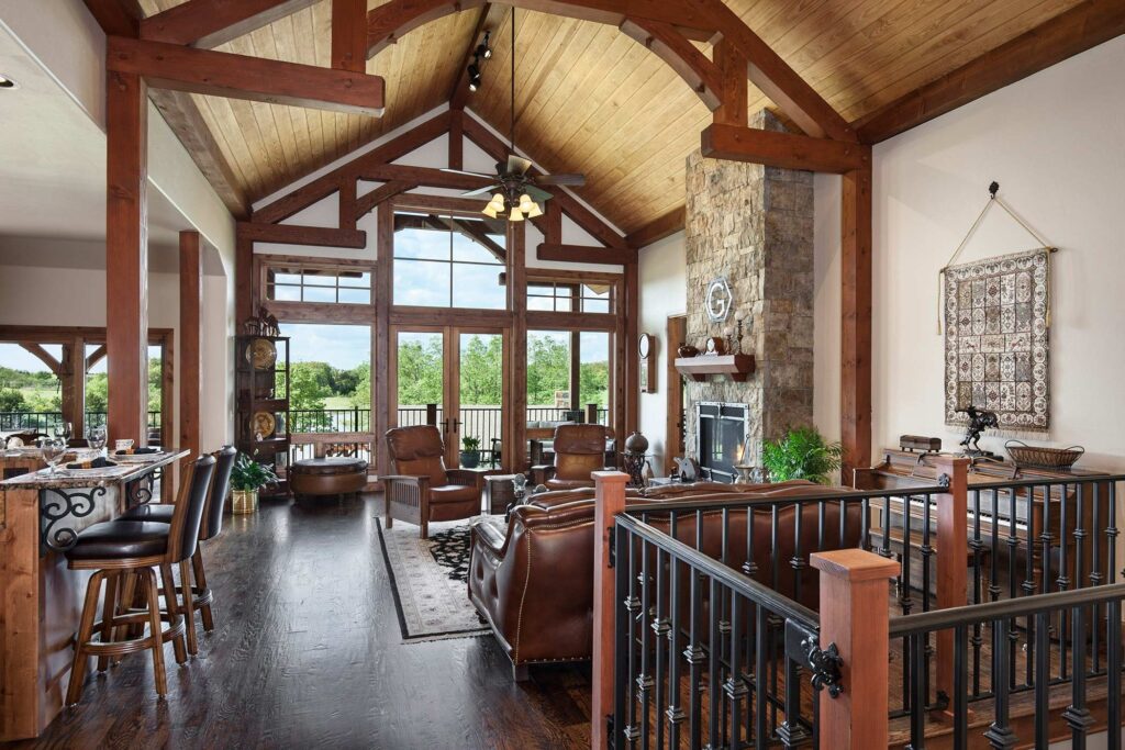 The great room commonly makes up the heart of most homes. As a popular gathering area, this room is often spacious and features vaulted ceilings with warm timber framing. The specific style of timber framing can vary greatly depending on the space and your personal preferences. Are you still trying to determine how you would like to design your own great room? Our gallery of great room photos is the perfect place for you to get ideas. Have a good look at everything from rustic lodges to elegant modern designs.