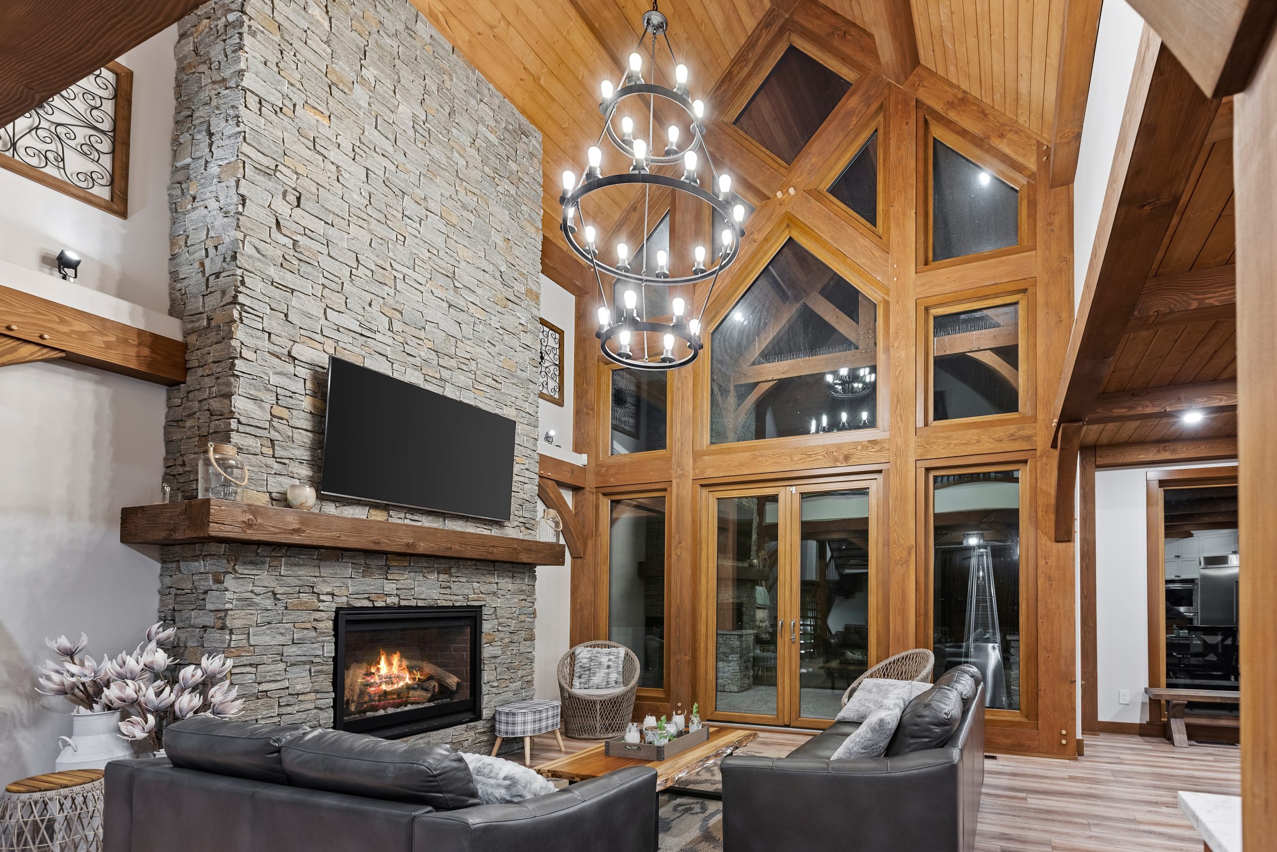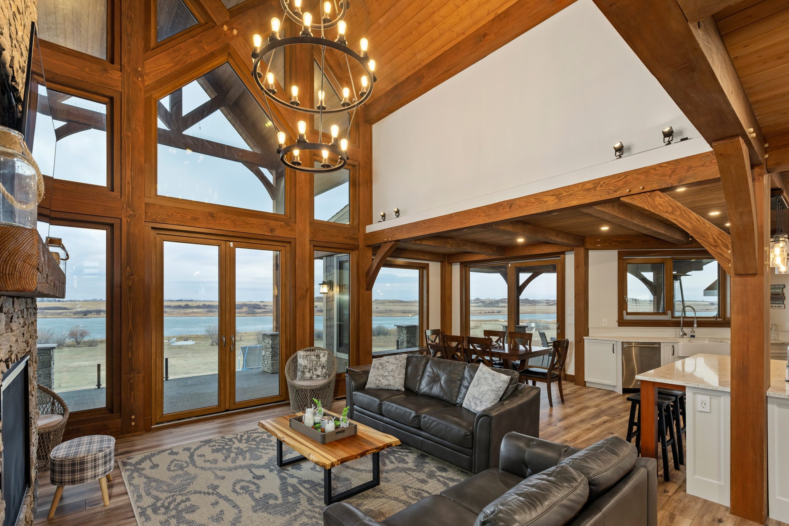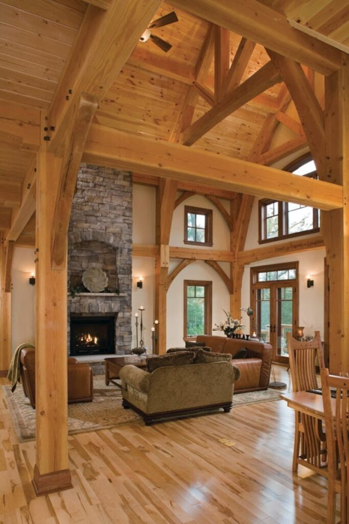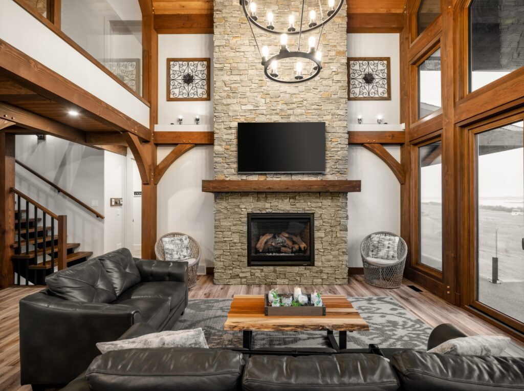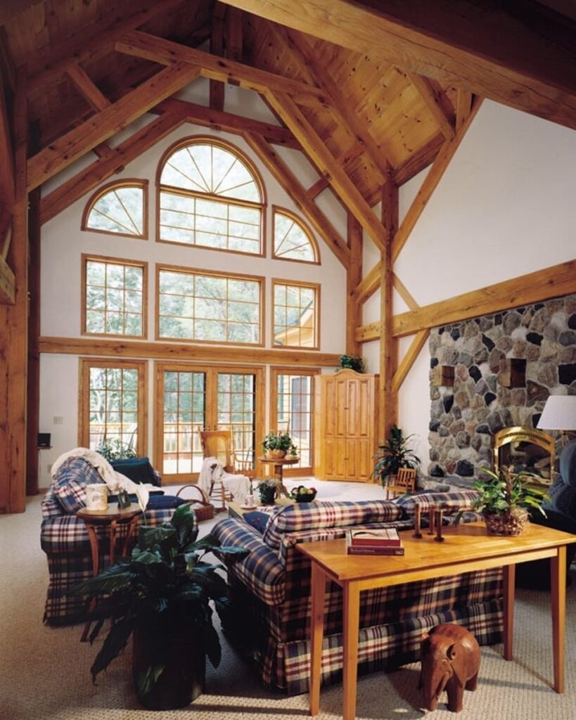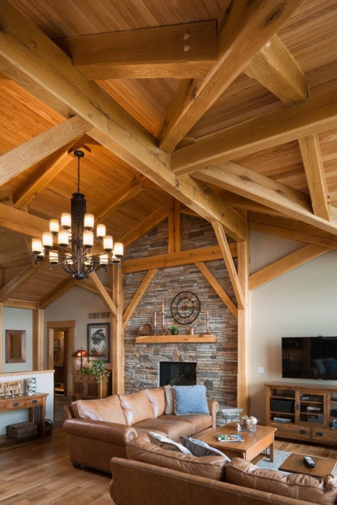 The great room commonly makes up the heart of most homes. As a popular gathering area, this room is often spacious and features vaulted ceilings with warm timber framing. The specific style of timber framing can vary greatly depending on the space and your personal preferences. Are you still trying to determine how you would like to design your own great room? Our gallery of great room photos is the perfect place for you to get ideas. Have a good look at everything from rustic lodges to elegant modern designs.