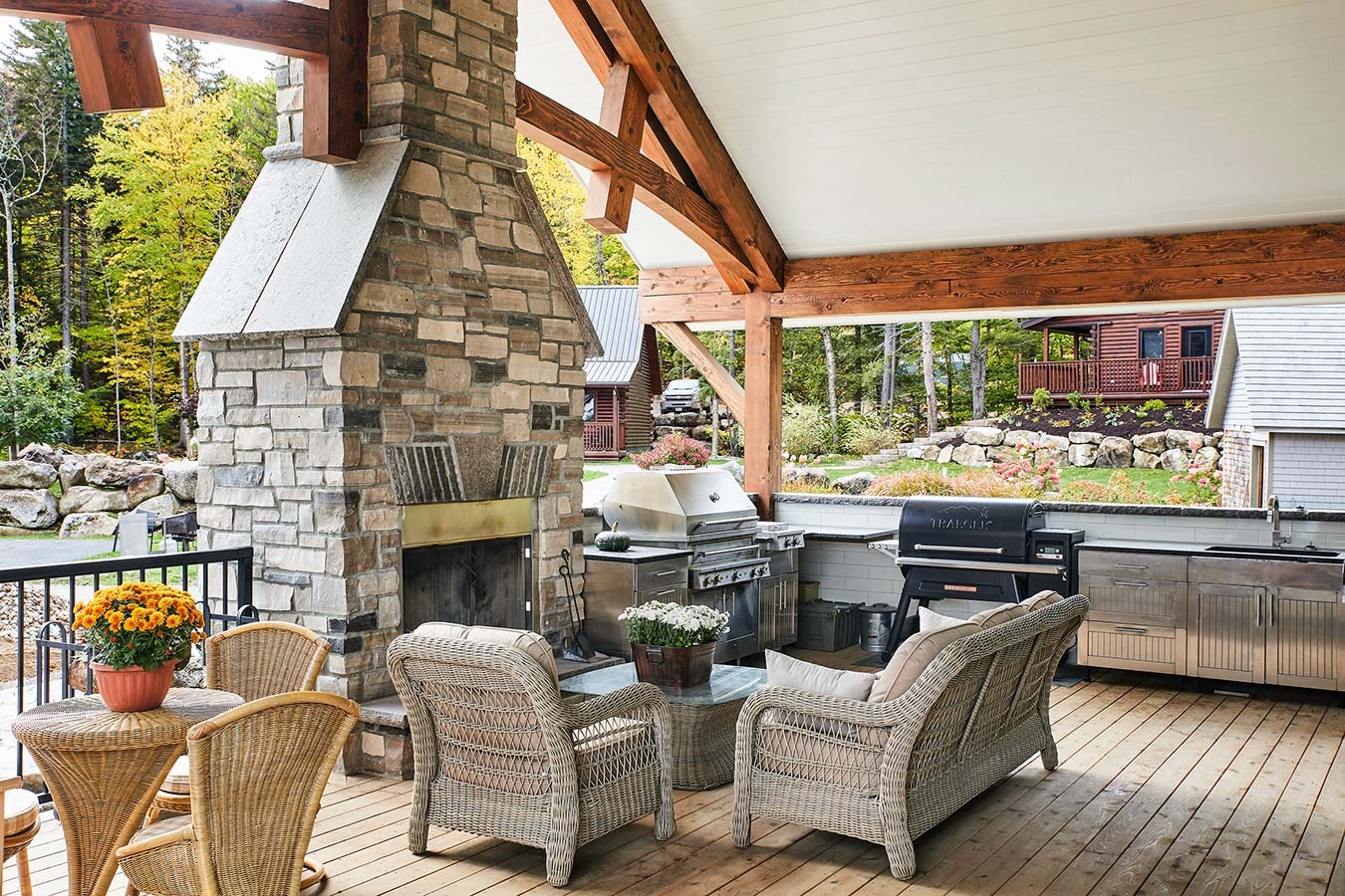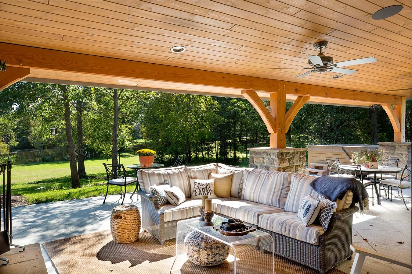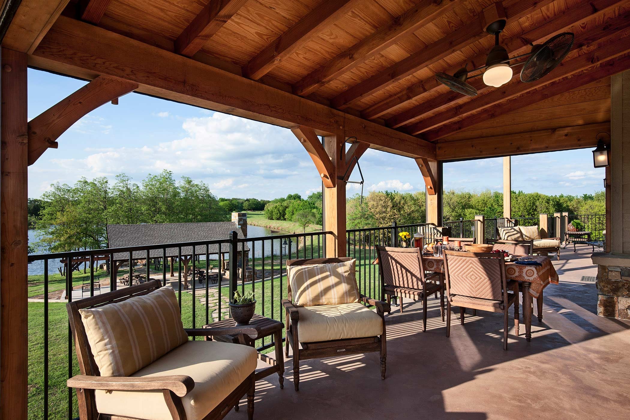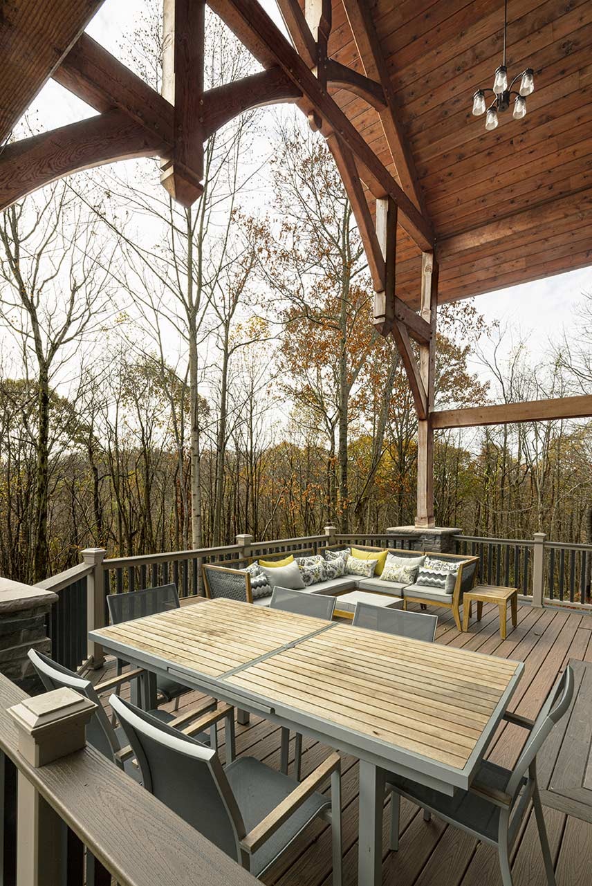 Browse ideas for creating your ideal outdoor living spaces. See how timber framing can enhance your outdoor areas by adding a timber pavilion, pergola, or gazebo. You can also work with your Riverbend designer to extend rooflines for covered decks and patios, framed in timber.