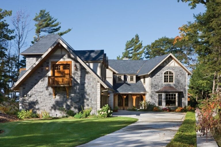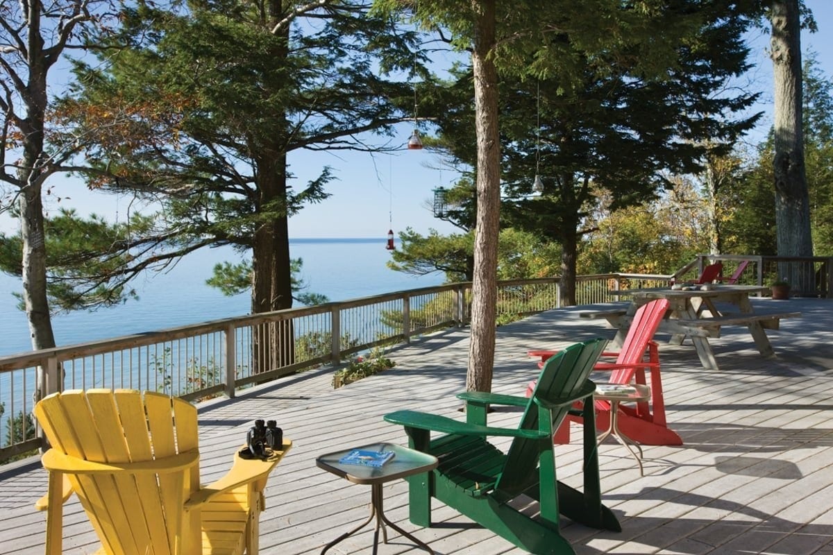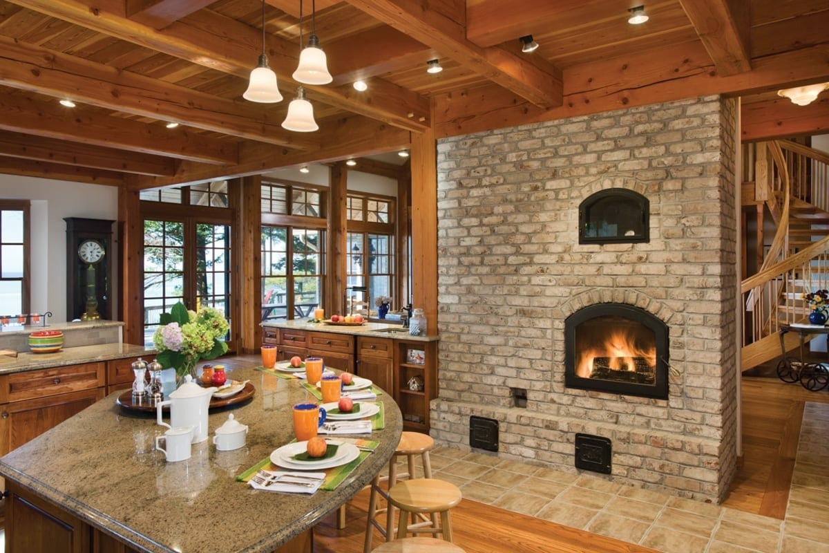 This lakeside cottage was built for a family to find refuge and relaxation from their busy life in Grand Rapids. The home’s layout is perfect for their large group with plenty of space upstairs to sleep children and guests alike. The main-level master suite is a luxurious retreat where the vaulted ceiling features beautiful timber framing. The expansive bay window looks out to the lake and a private fireplace creates a cozy atmosphere when the sun goes down.