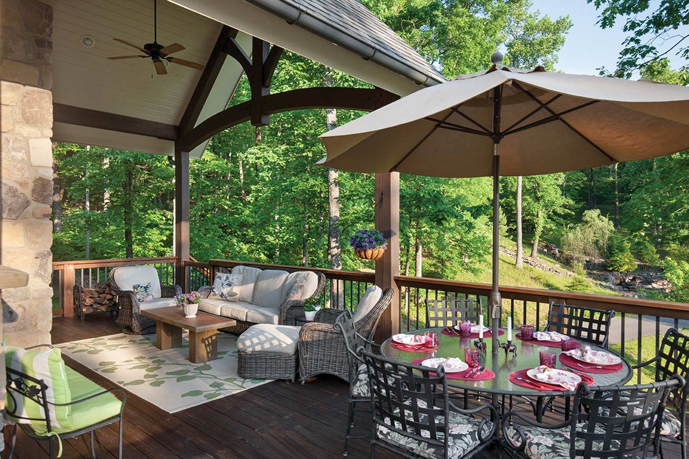 Locations can truly inspire, and the location of this home is near one of the most scenic areas of Northern Georgia–Lookout Mountain. The lush green landscape, with easy-rolling hills, provides an idyllic place to call home. The post and beam home’s layout takes advantage of those hills to incorporate a walk-out basement and an extended deck. The timber framing helps add to the fairytale cottage feel of the entire property.