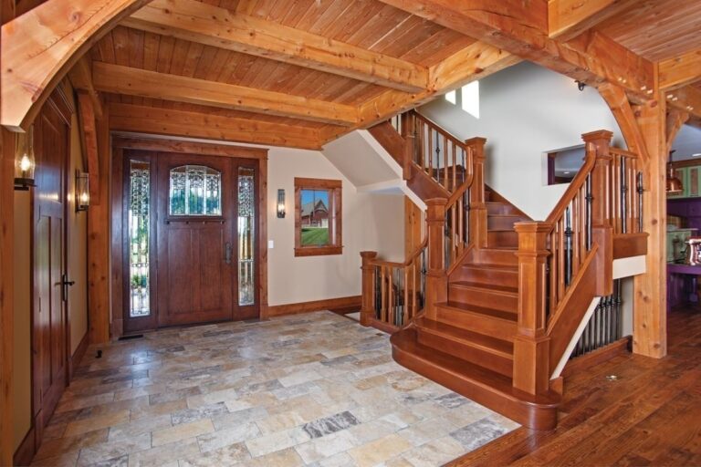 The functional aspect of the timbers provides a big, open layout which proved to be a perfect fit for the homeowners’ special events including a concert series they hold inside the home.